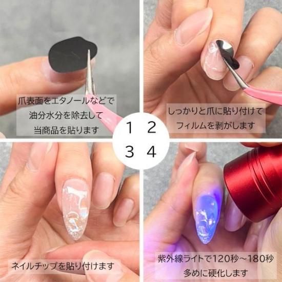 *UVがしっかりと照射するよう、当商品を貼り付ける箇所は半透明のデザインのネイルチップを推奨